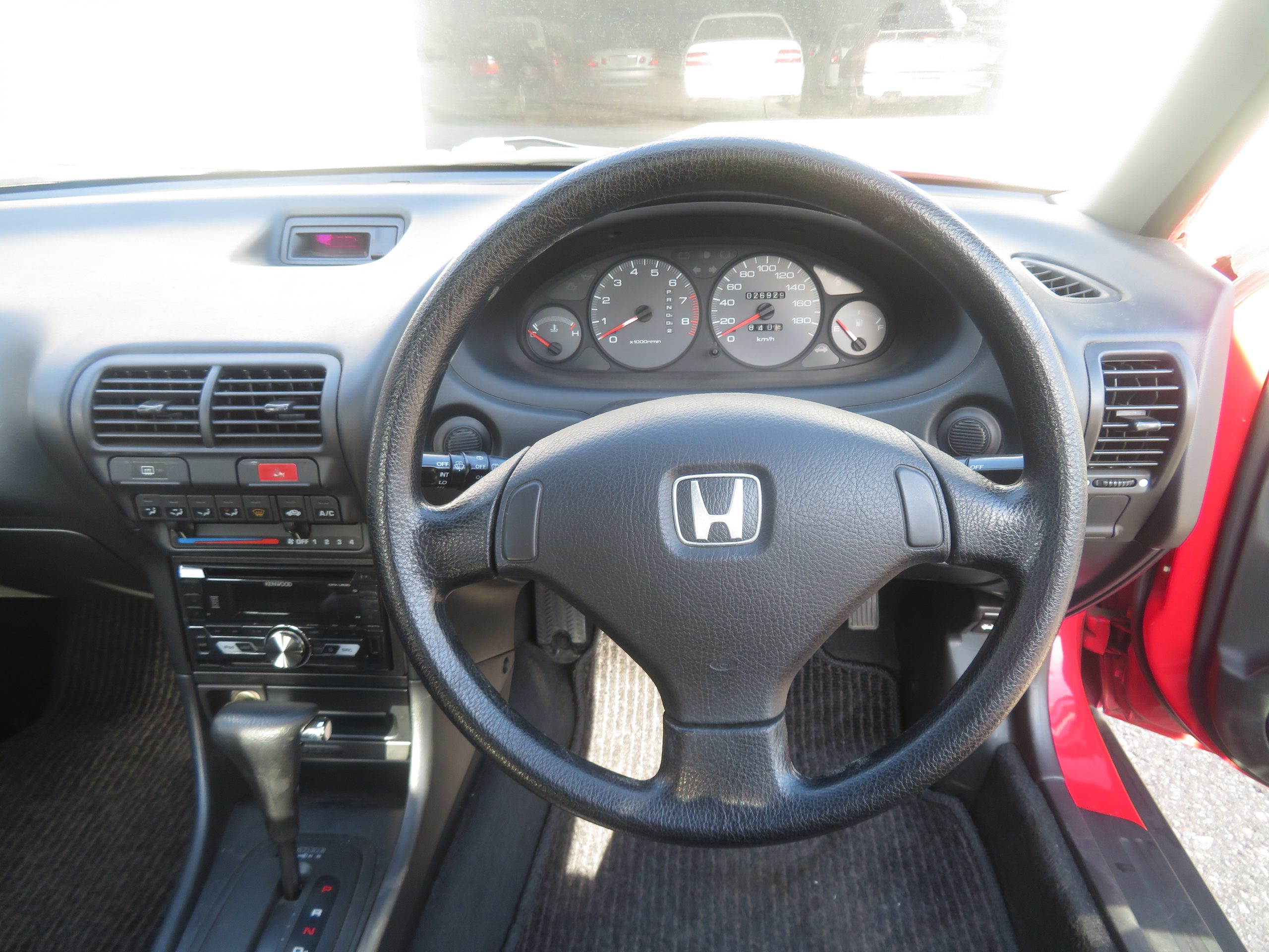 The interior of this Honda Integra is clean and well-maintained. It comes with power windows and an air conditioning system that blows cold air, ensuring comfort during drives. The engine runs strong, and the car drives straight, indicating a well-maintained alignment. The automatic transmission shifts smoothly into all gears, providing a seamless driving experience. This vehicle has been imported from Japan and complies with the United States Federal 25-year law, coming with a clean Texas title.