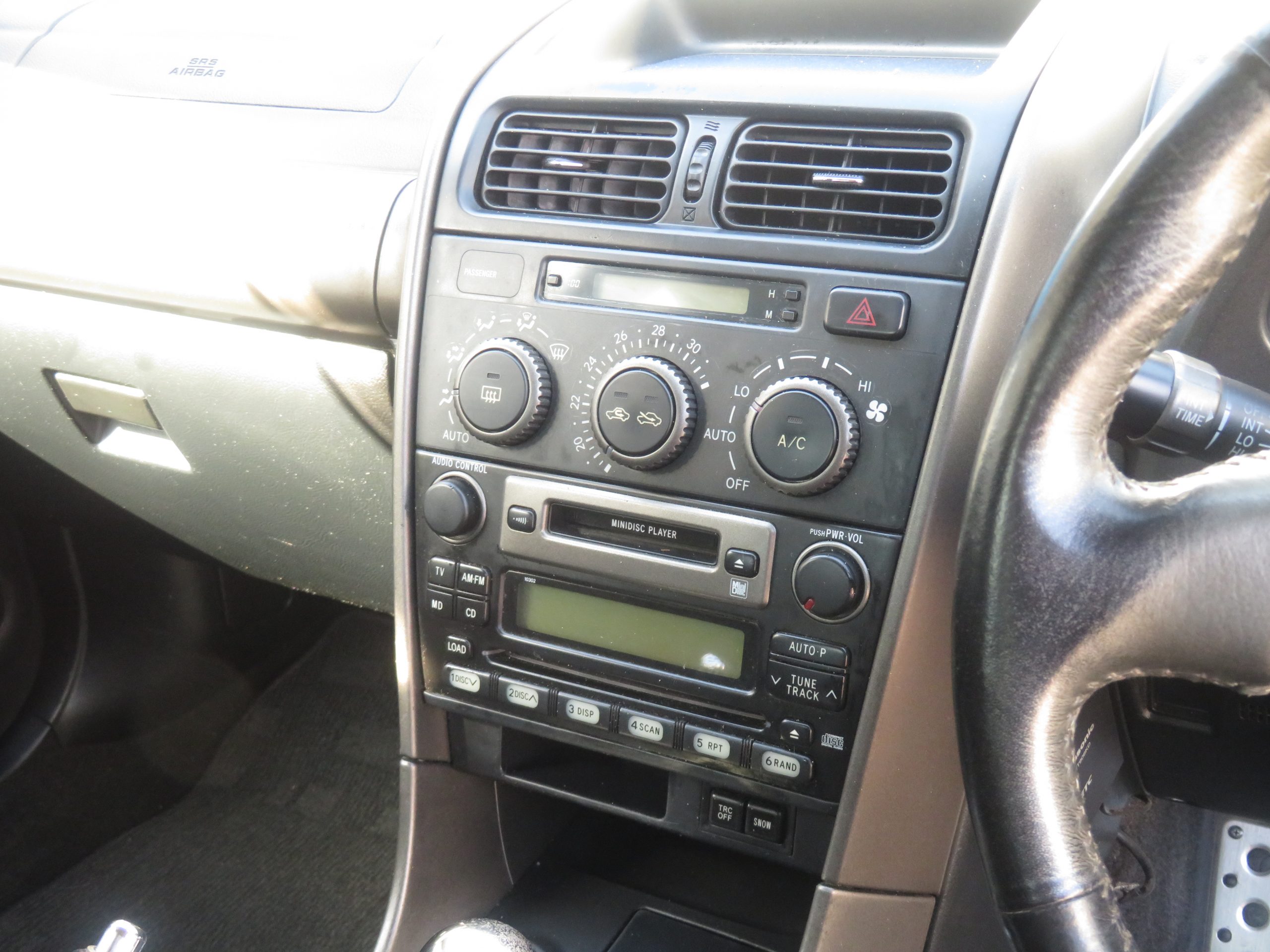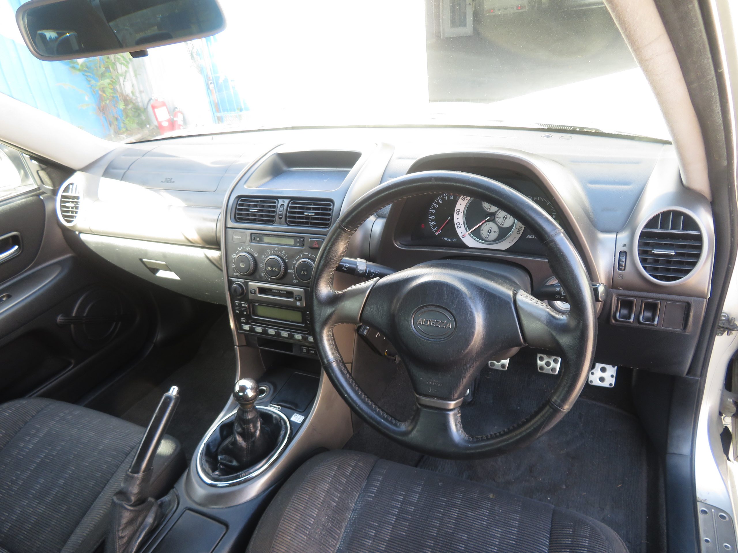 The Altezza is in good running condition. The engine runs strong and the car drives straight. The 6-speed manual transmission shifts smoothly into all gears, ensuring a comfortable and responsive driving experience. The car is equipped with power windows and power folding mirrors for added convenience. The A/C blows cold, making it a great choice for hot climates. The car rides on aftermarket wheels, adding a touch of personalization to its appearance.