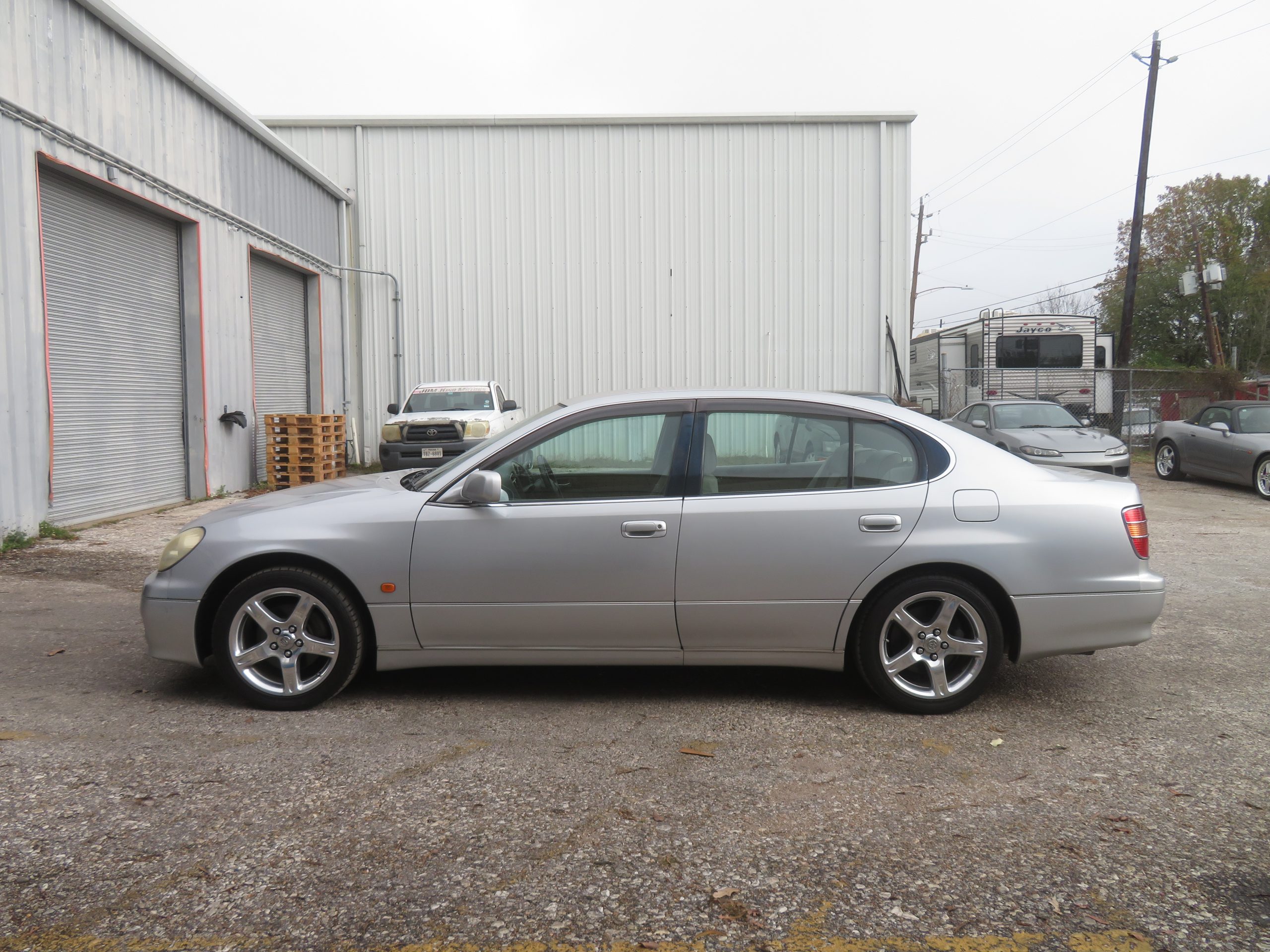 This is a 1998 Toyota Aristo JZS160, a classic JDM vehicle that was imported from Japan under the United States Federal 25-year law. It comes with a clean Texas title and has a mileage of 87,010KM / 54,381 Miles. The car is powered by a 2JZ-GE VVTi engine and an automatic transmission.